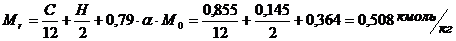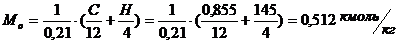 воздуха, теоретически необходимое для сгорания 1 кг топлива: