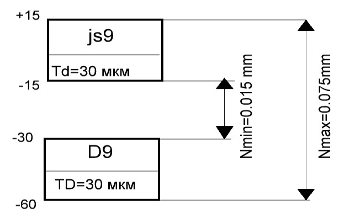 выписываем предельные отклонения.=0,015 мм. - верхнее отклонение