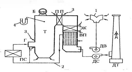 компоновку и состоит из топочной камеры и конвективной шахты, соединенные в