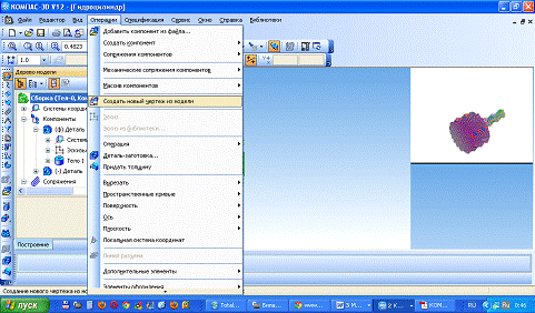 меню Операции выбрать пункт Создать новый чертеж из модели. Сохраним файл.