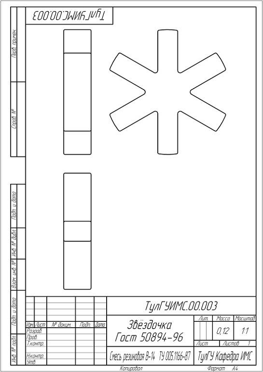 сборка упругой муфты со звёздочкой, ее сборочный чертеж, построены рабочие