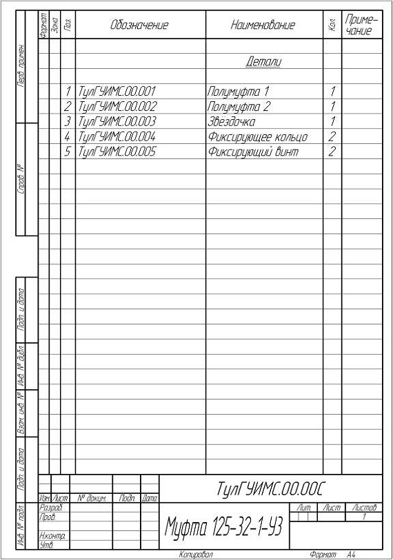 чертежи для каждой детали муфты и составлена спецификация с указанием каждой