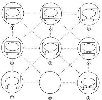 очереди выкладывают карточки, соотнося одинаковое количество точек друг с
