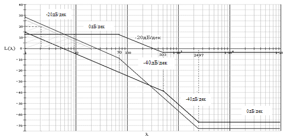 корректирующего устройства определяется вычитанием из ЖЛАЧХ ЛАЧХ.