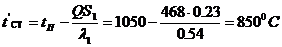 Температура на границе огнеупорного и теплоизоляционного слоёв: