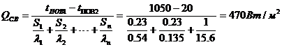 температуре: шамот λ1=0,54 Вт/м² 0С, пенодиатомит λ2=0,135 Вт/м² 0С. Принимаем, что внешняя поверхность печи окрашена