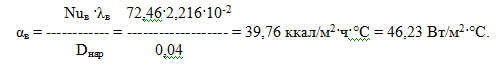 Коэффициент теплоотдачи от стенки трубы к