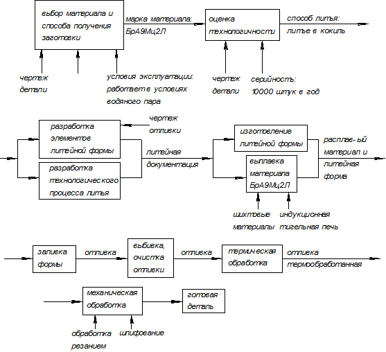 материал - БрА9Мц2Л, для заданной программы 10000 штук в год - способ получения