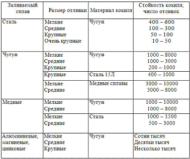 4.2.4 Характеристики получения отливок в кокилях из медных сплавов