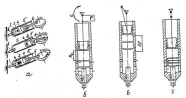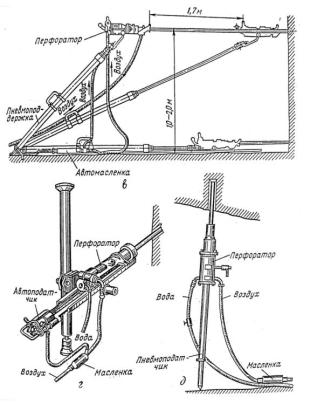 перфоратор: а - конструктивная; б - принципиальная схемы; в…д - схемы установки