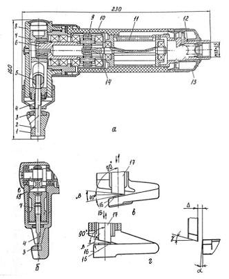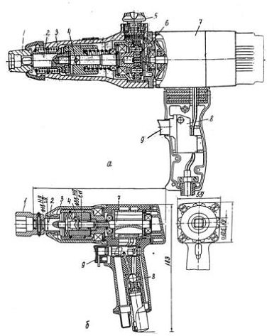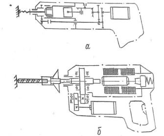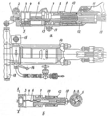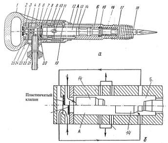 перфоратор ПРГ-18КБ: а - конструктивная; б - принципиальная схемы; 1 - рукоять