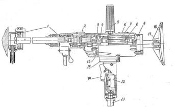 втулка; 9 - патрон; 10 - поворотная букса; 11 - буродержатель; 12 - гранбукса;