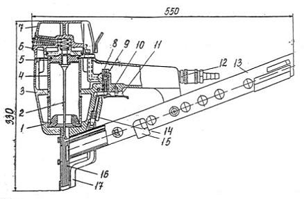 рукоятка; 8 - пружиновоздушный аккумулятор;