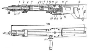 пневматические бурильные молотки и в последнее время - гидравлические; реже