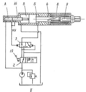 управления; 20 - пружина; А, Б, В-камеры: рабочего, обратного ходов и