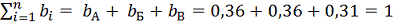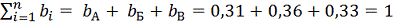 весомости элементов A, Б, В,