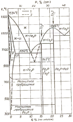насыщении не образуются. Низшие фосфиды железа практически не имеют интервалов