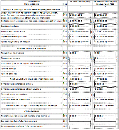 Показатели построения отчета о прибылях и убытках в России