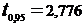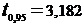 значение коэффициента Стьюдента для доверительной вероятности Р=0,95 в