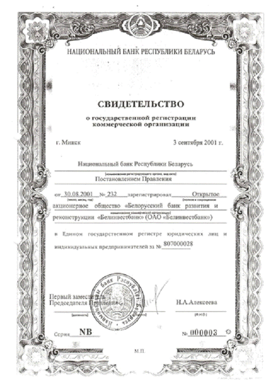 4. Головной филиал по Гродненской области ОАО «Белинвестбанк»