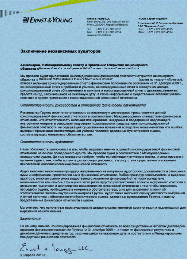 №316 Головного Филиала Гомельской области ОАО «Белинвестбанк».