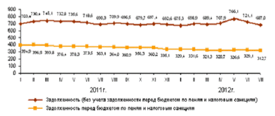 На рисунке один можно проследить динамику задолженности