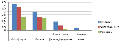 препаратов (Фитоспорин-М, Урожай-С) на развитие и распространенность грибных