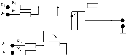 Uвых=U3(R’oc/R’1)+U4(R’oc/R’2)-U1(Roc/R1)-U2(Roc/R2);
