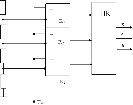 АЦП параллельного типа состоит из резисторного делителя на резисторах, линейки
