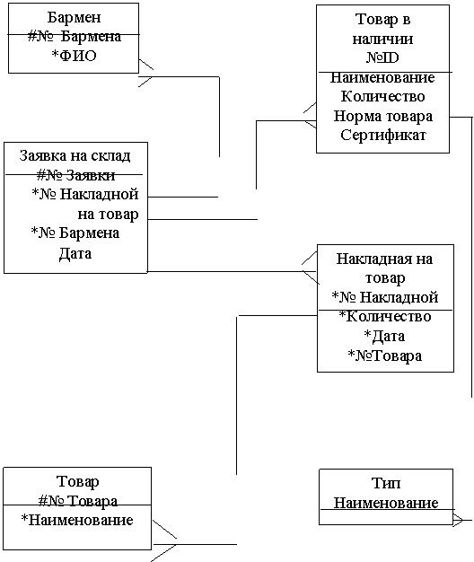 расход товара за смену. Заказ выполняется барменом, оформлением заявки на