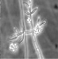 Конідії одноклітинні, куле- або яйцеподібніі, 2-3 мкм у діаметрі (рис. 1).