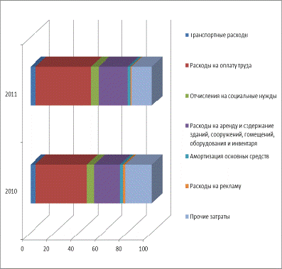 Наибольший удельный вес в структуре затрат ООО «Гамма» составляют расходы