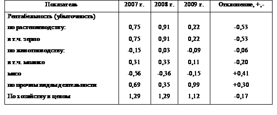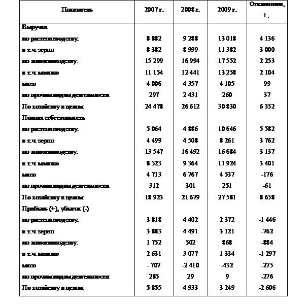 Убыток от продажи по хозяйству в целом в 2009 г. составил 3 242