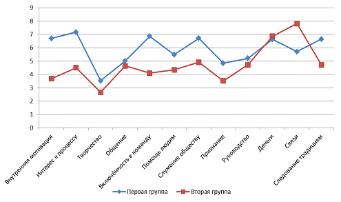 к процессу, включённость в команду, служение обществу, признание, потребность в