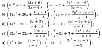 а)~$\ds\left(6z^2+z+\frac{13z+6}{3z-4}\right):