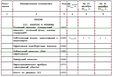 III "Капитал и резервы" баланса в структуру отчета об изменениях