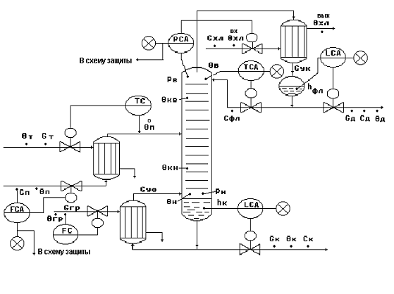 Составить схему автоматизации ректификационной