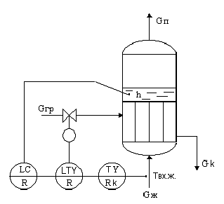 уровня кубового продукта (hк) c динамическим компенсатором по расходу греющего