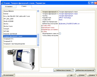 ) выбрать станок для обработки детали, для этого нажимаем «Параметры» и