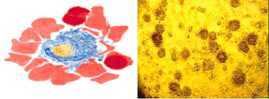 иногда закрывая клетку со всех сторон, вследствие чего пораженные лейкоциты