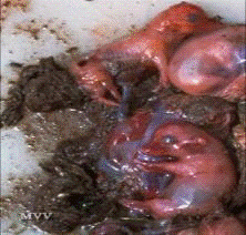 гастроэнтерит, кровоизлияние и некроз слизистой оболочки