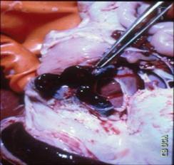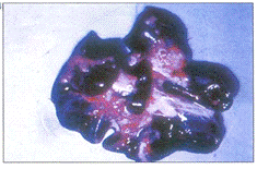 полнокровие печени, интенсивные кровоизлияния на границе с желчным пузырем