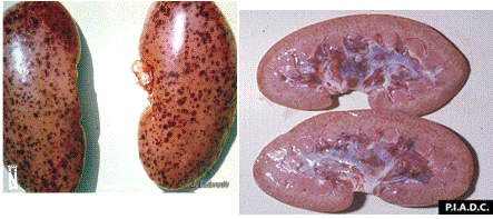 полнокровие почек, интенсивные подкапсулярные кровоизлияния, геморрагическая