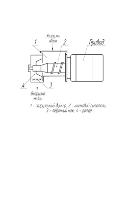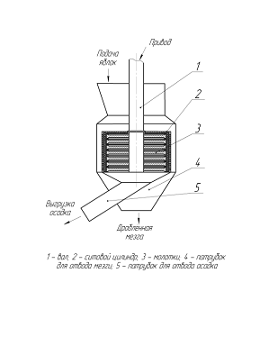 дисковой дробилке ВДР-5 яблоки, загружаемые в бункер 1, попадают на вращающийся