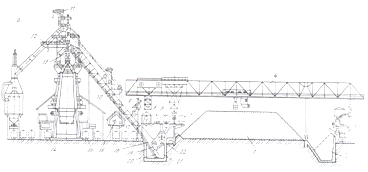 обслуживания доменной печи используется консольно-поворотный кран 11 для