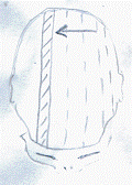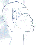 удлинением к лицу с левой стороны и укороченной правой частью.