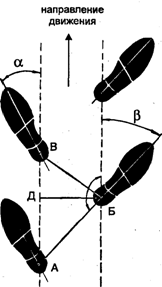 между двумя последовательно оставленными следами по линии направления движения.
