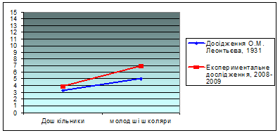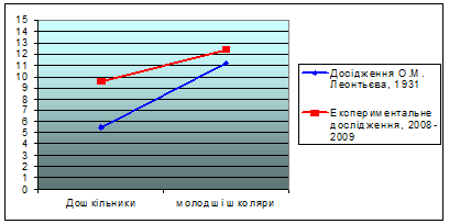 дослідження О.М. Леонтьєва, у даному дослідженні спостерігаються вищі показники