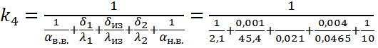 среднелогарифмическую разность температур между воздухом и ХА и коэффициент