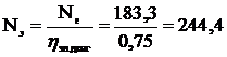 электродвигателем из сети Nэ необходимо учесть КПД электродвигателя.